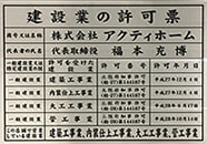 | 一般建設業許可(建築工事業・大工工事業・管工事業・内装仕上工事業) 第144187号 |
